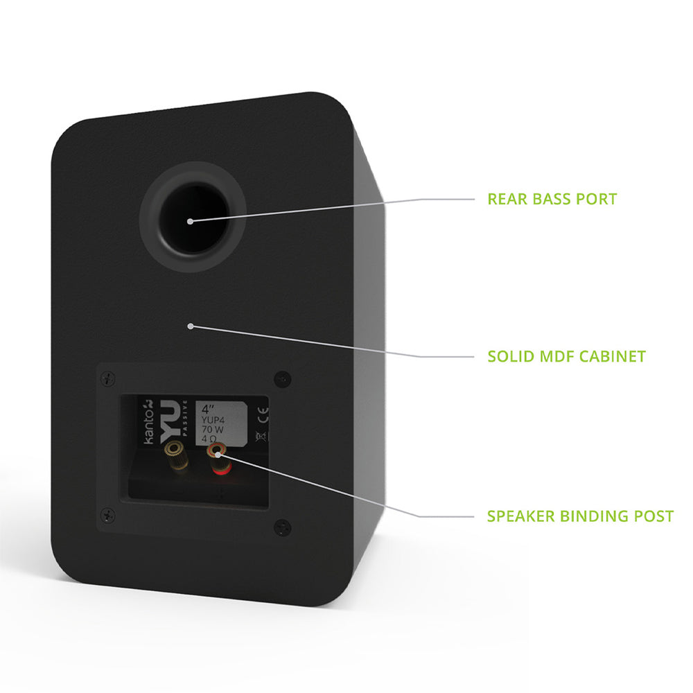 Kanto YU Passive 4" Speakers with 1" Silk Dome Tweeter and 4" Kevlar Woofer - Black, Pair is designed for purists who appreciate clarity, balance, and flexibility. These passive bookshelf speakers pair perfectly with the amplifier of your choice, offering a customized listening experience whether you're setting up a desktop DAC/amp combo, enhancing your TV's audio, or building a surround sound home theater.